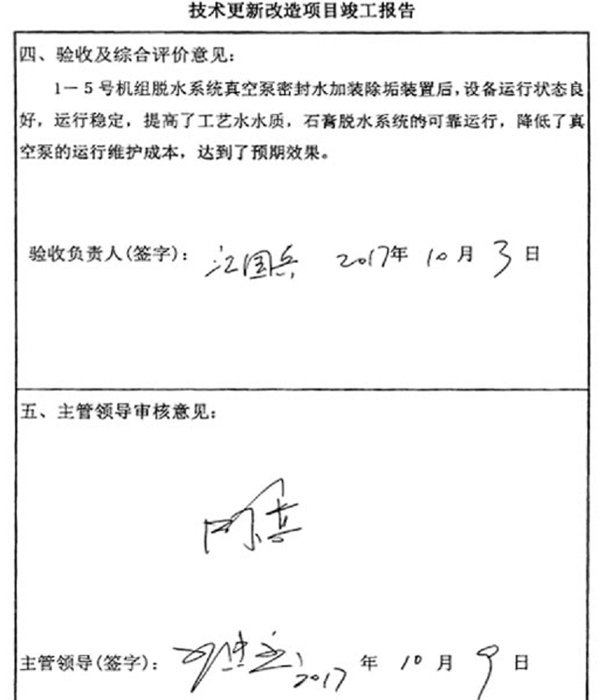 國(guó)華粵臺(tái)電電子除垢儀竣工報(bào)告1