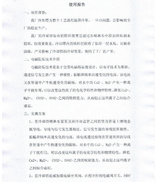 天煜掃頻電子除垢儀使用報(bào)告2