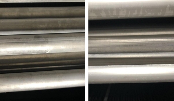 特高壓錦屏換流站冷卻塔盤管使用掃頻除垢設(shè)備前后對(duì)比圖