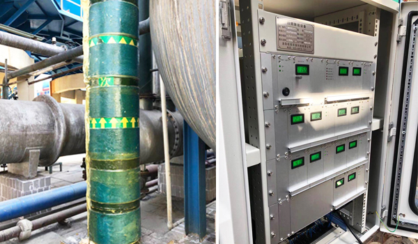在龍蟒佰利聯廠區(qū)現場可以看到,掃頻電子除垢系統(tǒng)安裝時將線圈纏繞在循環(huán)水管道上,不需要切割管道,不接觸介質,設備安裝簡單方便。
